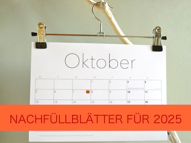 - durch Kleiderbügel; demnach kann der Kalender z.B. auch einfach an einem Fenstergriff, oder einem schönen Ast aufgehängt werden