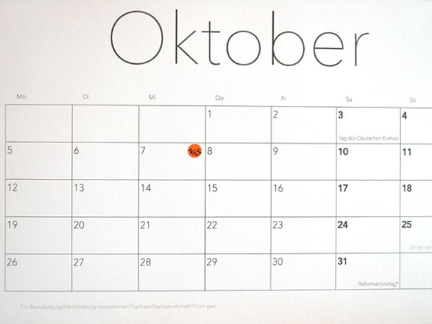 - inklusive orangene und grüne Sticker, 100 Punkte und 10 Pfeile für Markierung besonderer Tage wie z.B. Urlaub