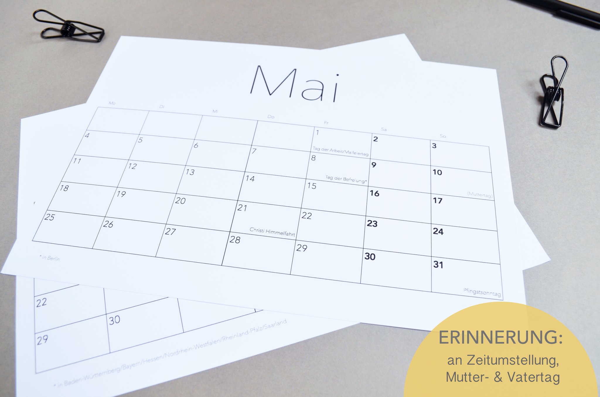 - Gesetzliche Feiertage (für Deutschland) in Fettschrift.