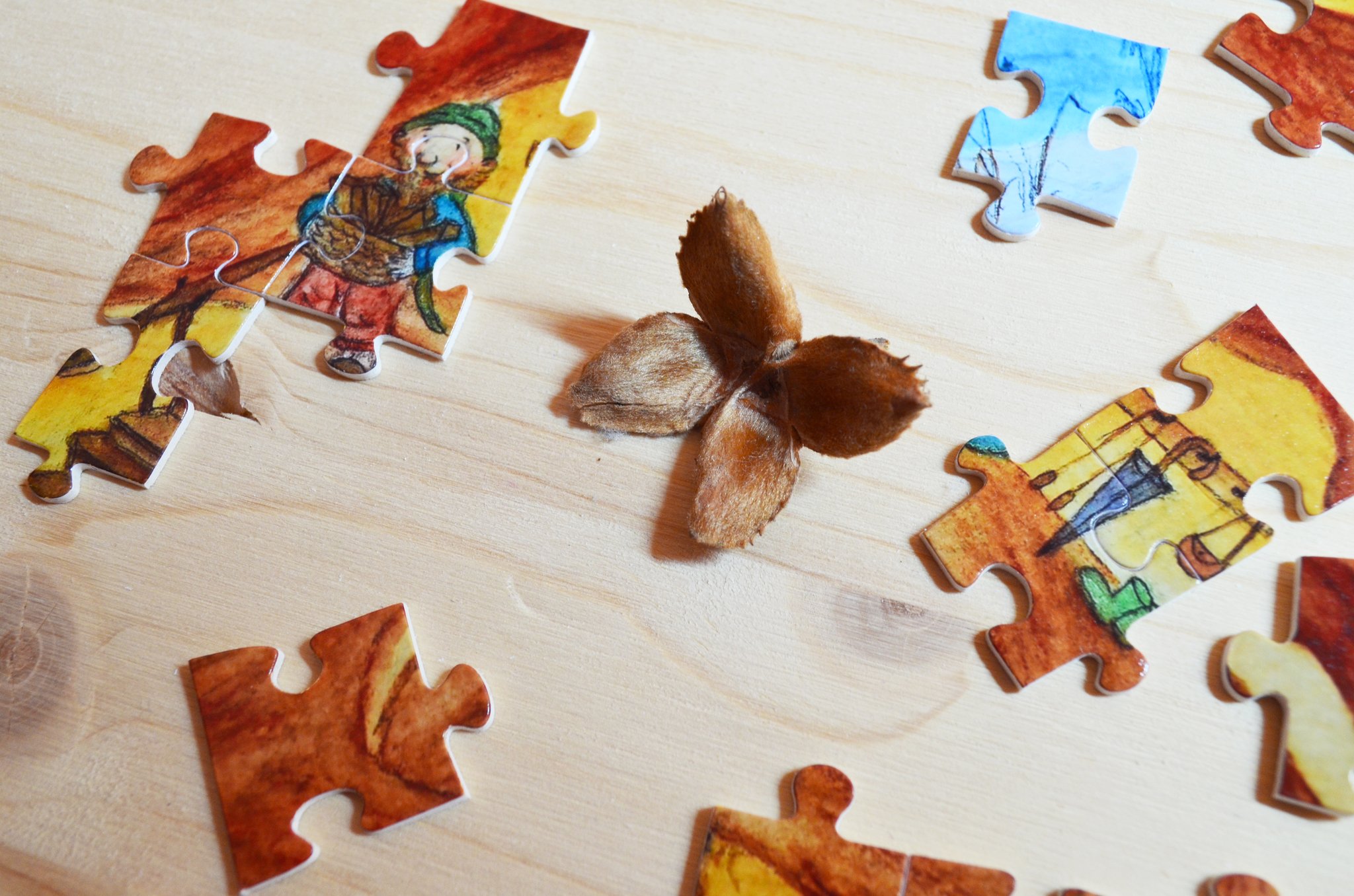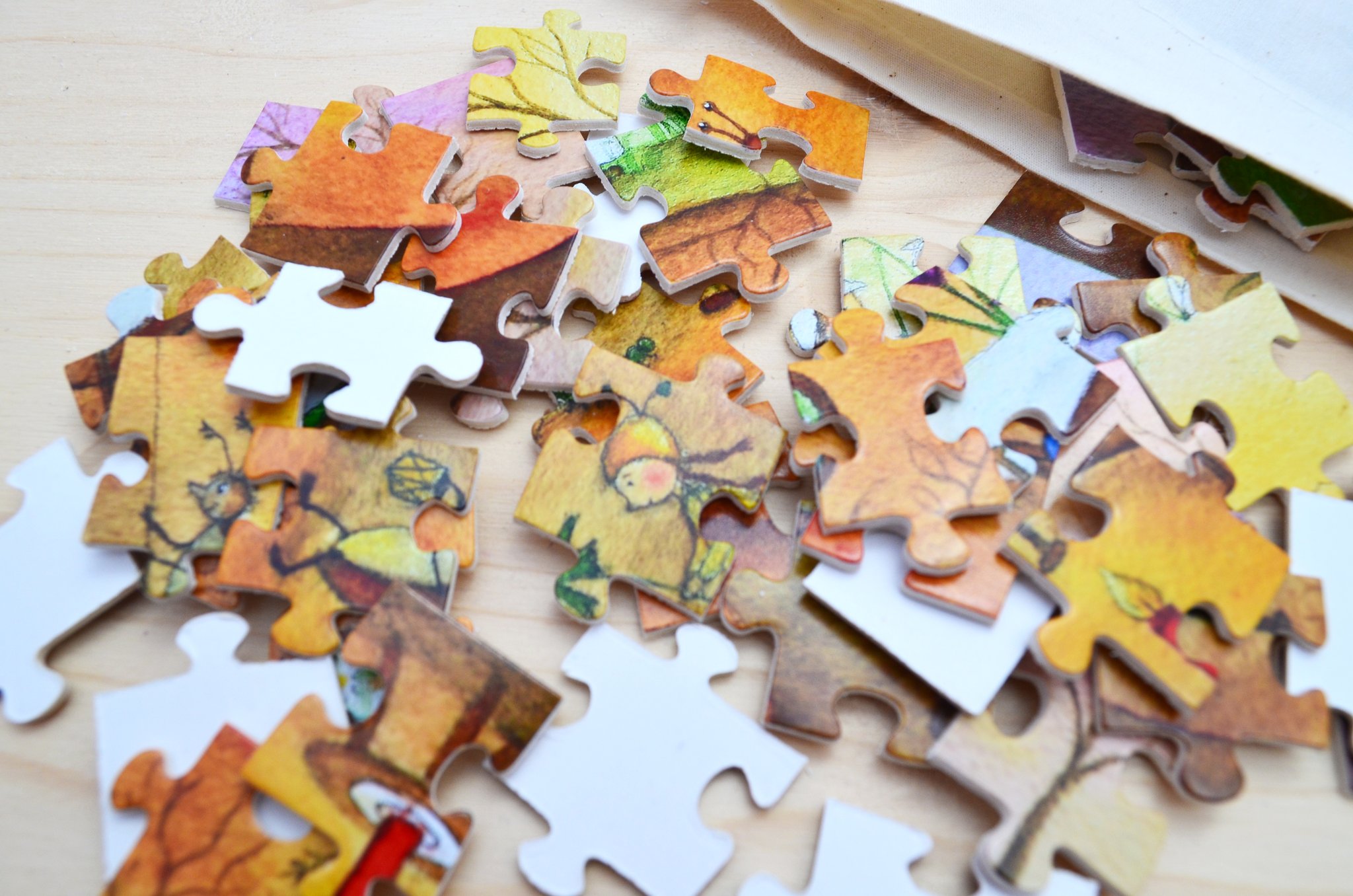 Verpackt sind die Puzzles in einem Baumwollsäckchen sowie zusätzlich im Karton auf welchem das jeweilige Motiv abgebildet ist.