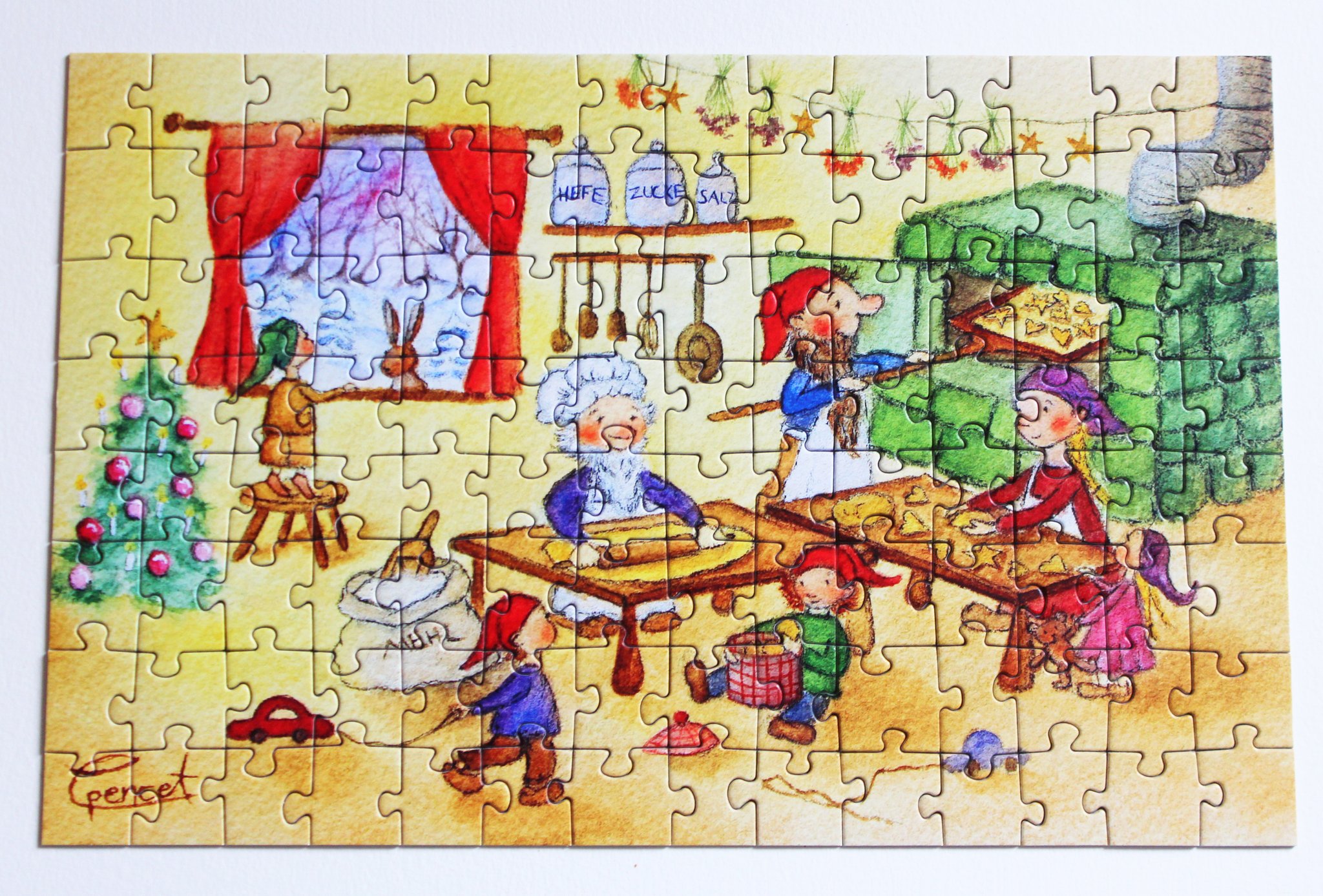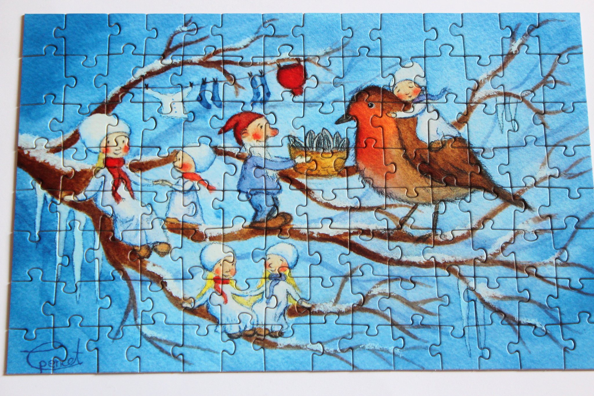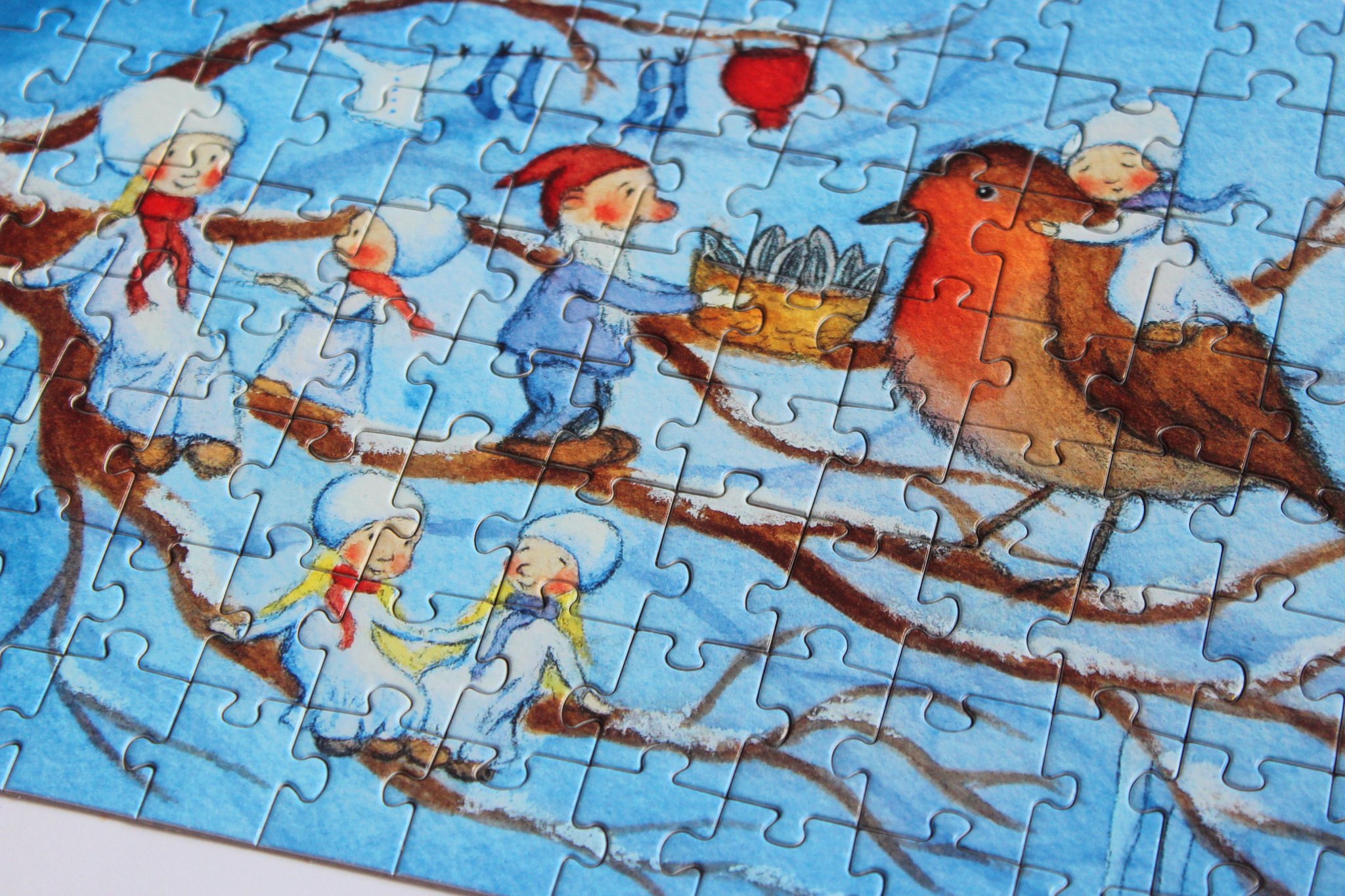 Ein wunderschönes Geschenk für DEZEMBERGEBORENE - das liebevoll gemalte Puzzle von der Illustratorin CARINA PENCET mit 112 Teilen.