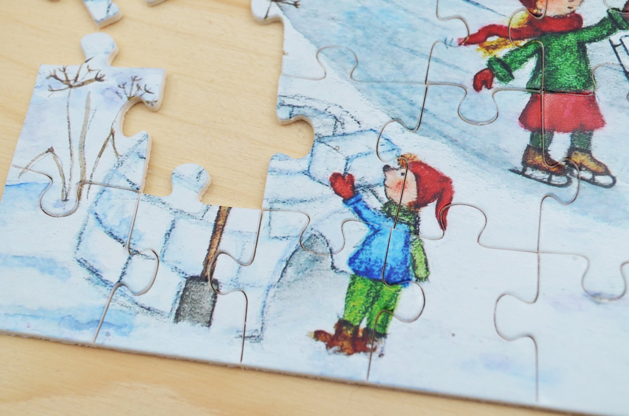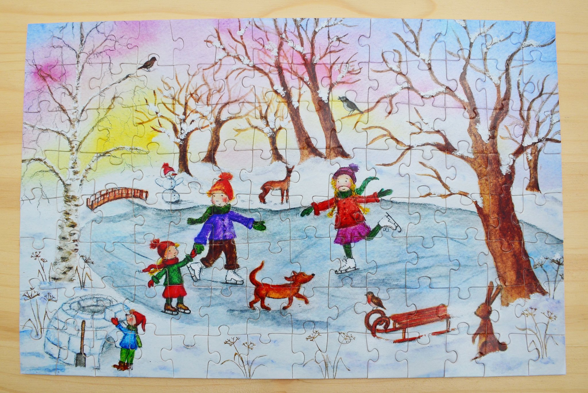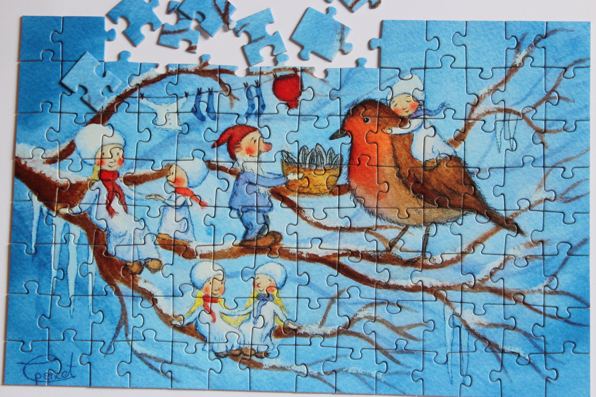 Ein wunderschönes Geschenk für DEZEMBERGEBORENE - das liebevoll gemalte Puzzle von der Illustratorin CARINA PENCET mit 112 Teilen.