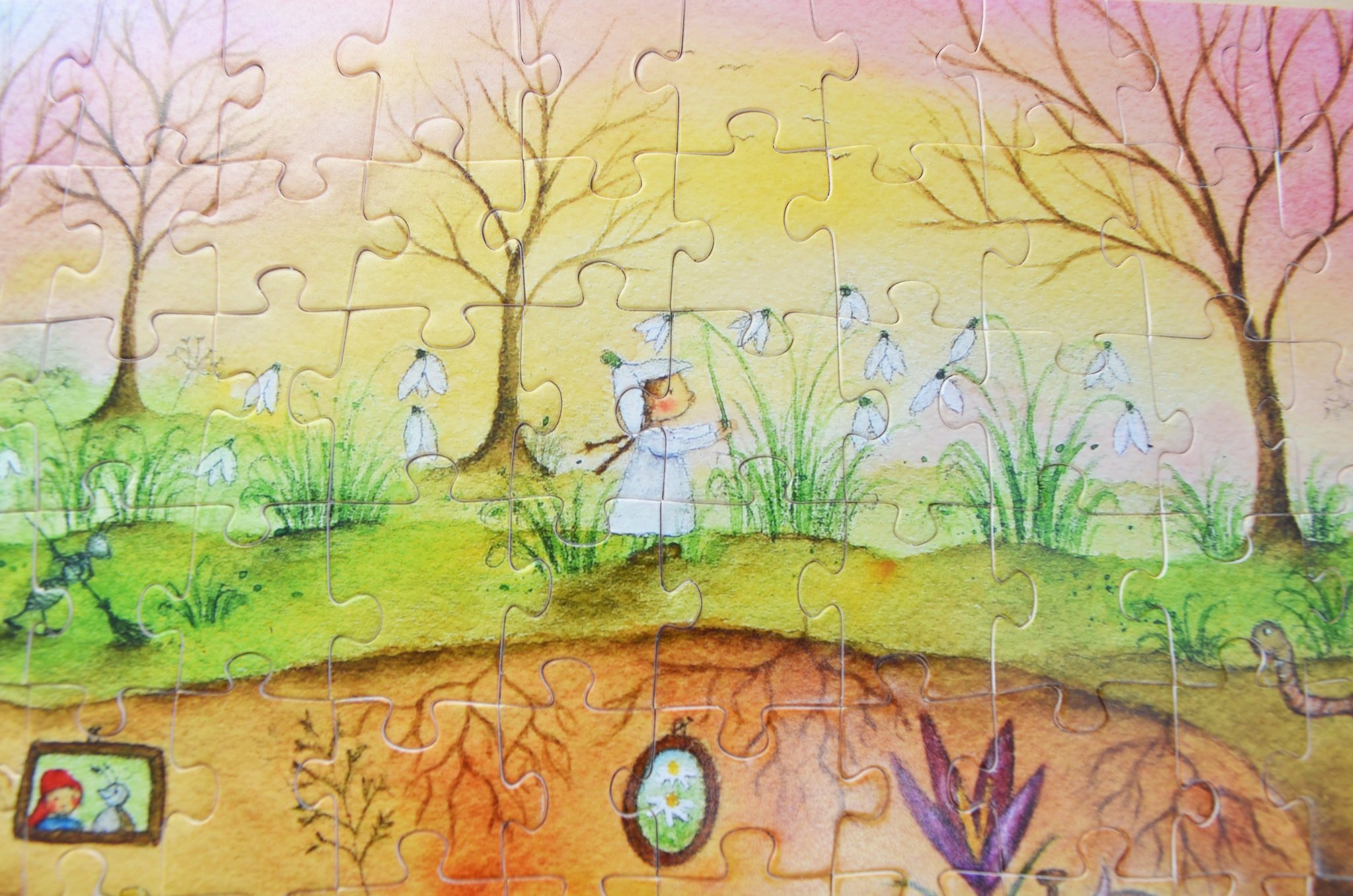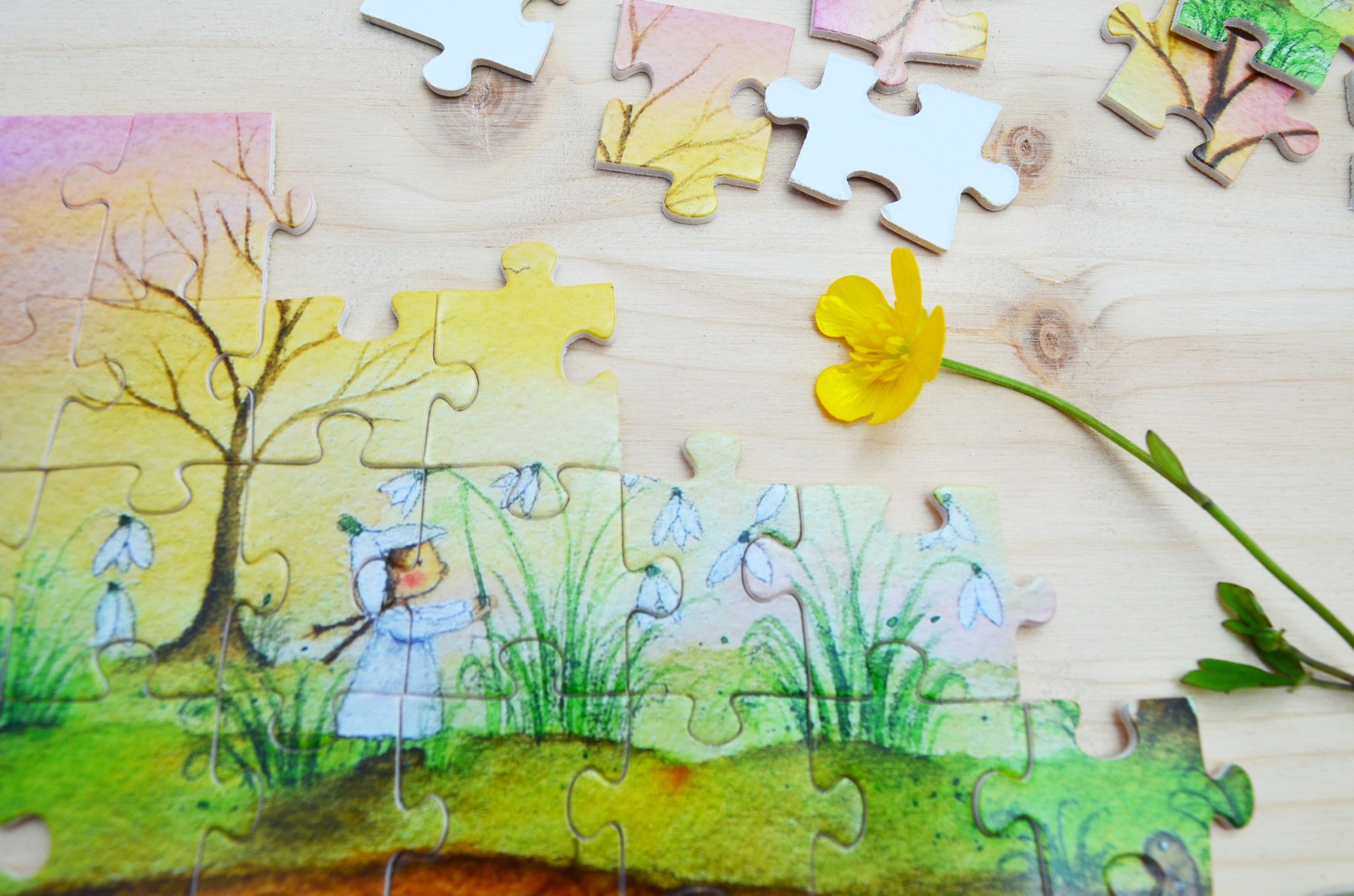 Ein wunderschönes Geschenk für FEBRUARGEBORENE - das liebevoll gemalte Puzzle von der Illustratorin CARINA PENCET mit 112 Teilen.